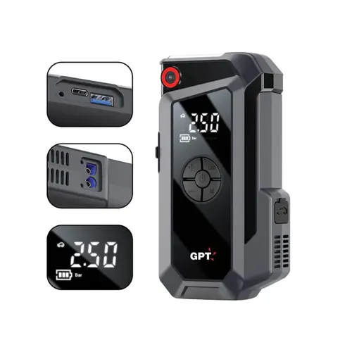 בוסטר התנעה לרכב 8000MA כולל קומפרסור לניפוח גלגלים GPT דגם BO16COM